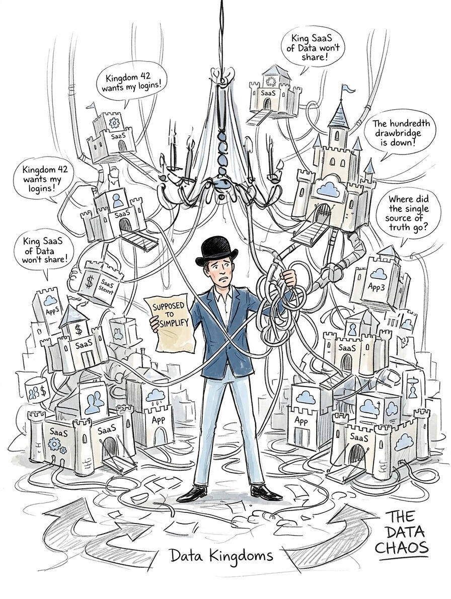 This article tells the story of how the very thing that was supposed to simplify everything — the plug-and-play of SaaS — quietly becomes its own kind of mess.